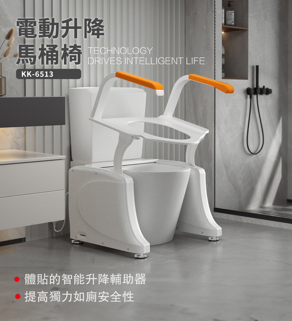 ●本商品不含安裝 ●產品型號 : KK-6513 ●使用電壓 : 110V~240V ●產品尺寸 : 480X690X705mm ●最大荷重 : 200kg ●防護等級 : IPX4 ●座板前沿有效提升高度 :130~175mm ●安全系統 : 開關電源熱保護,開關電源過流保護,開關電源短路保護